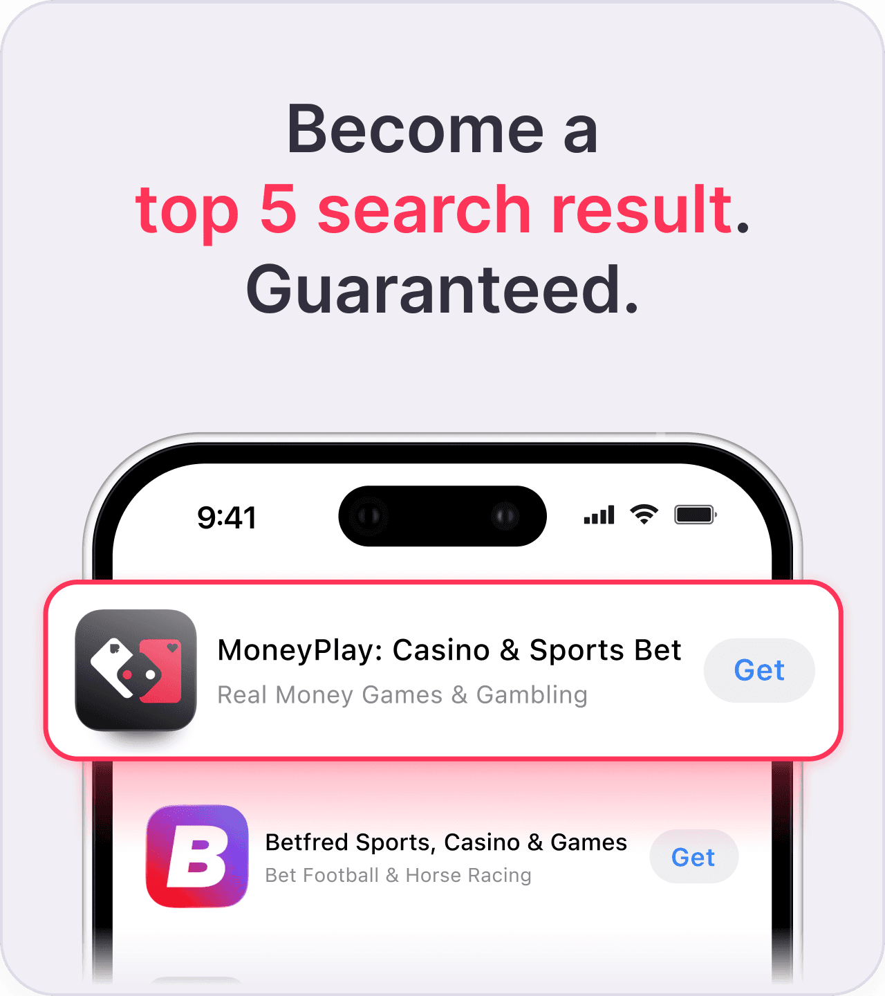 Leveraging the stores' algorithms, our proprietary systems push your app to the top results of every relevant search, above competitors, right where high-intent users are looking.